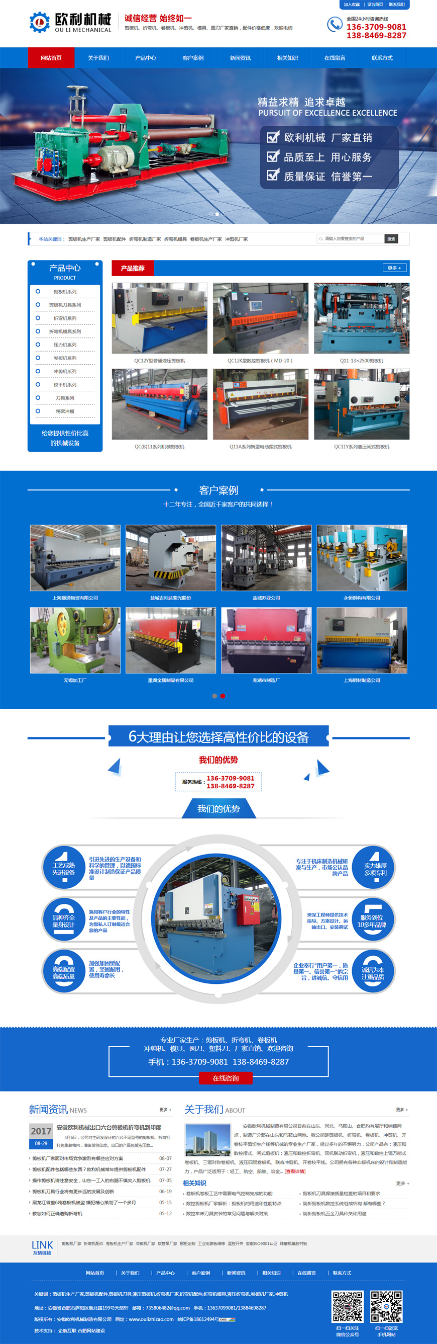 安徽歐利機械制造有限公司目前在山東、河北、馬鞍山、合肥均有展廳和銷售網點,制造廠分部在山東和馬鞍山兩地。我公司是剪板機、折彎機、卷板機、沖剪機、開卷校平剪切生產線等機械的專業生產廠家,經過多年的不懈努力,公司產品有:液壓和數控擺式、閘式剪板機;液壓和數控折彎機、雙機聯動折彎機,液壓和數控上輥萬能剪板機、三輥對稱剪板機、聯合沖剪機、開卷校平線。公司擁有各種非標機床的設計和制造能力,產品廣泛適用于:輕工、航空、船舶、冶金、儀表、電器、不銹鋼制品、建筑及裝潢行業,產品暢銷國內外市場。同時,公司還專業生產軟磁鐵氧體材料專用機床,如:直線通過式氣隙平面磨床;有批量制造各種鋼模板的經驗和能力。