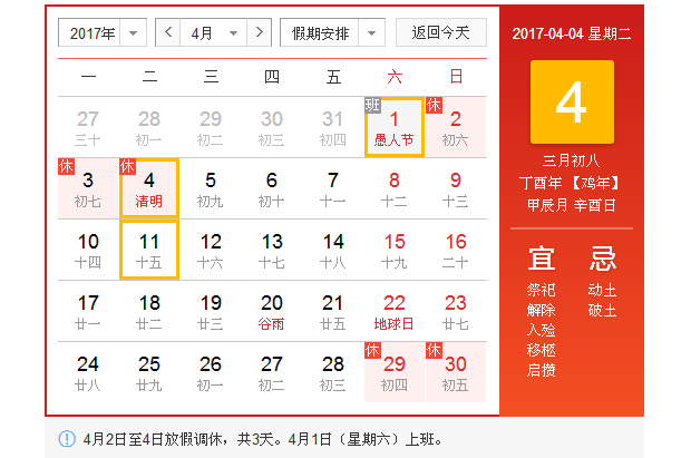 2017年清明節放假通知