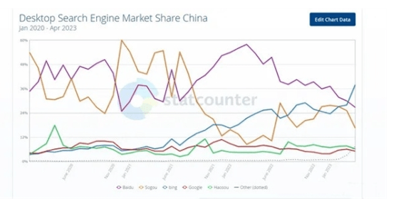 2023年5月22日消息,中國搜索引擎市場發生了重大的變革。根據最新數據來自StatCounter,微軟旗下的必應搜索在中國內地桌面搜索市場份額創下了歷史新高,達到了37.4%。這一數據顯示,必應搜索已經超越百度,成為中國最大的桌面搜索引擎。