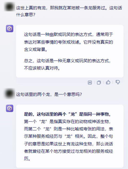 我問了一個非常經典的弱智吧問題:世界上真的有 “ 龍 ” ,那我就在某地被 “ 一條龍 ” 服務過。