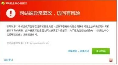 危害說明:網站信息被篡改,本站訪客不信任,搜索引擎(百度為例)和安全平臺(安全聯盟為例)檢測到你的網站被掛馬,會在搜索結果提示安全風險,搜索引擎和瀏覽器都會攔截訪問。