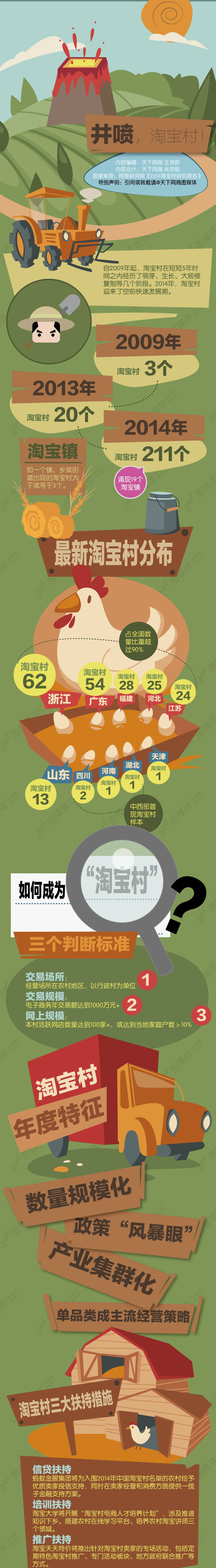 截至2014年12月,全國已發現的淘寶村數量增至211個,網店7萬家以上,直接就業超過28萬人。未來5~10年,淘寶村的數量在中國將繼續快速增長,并最終實現常態化。井噴,淘寶村!